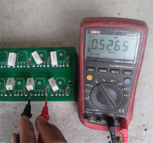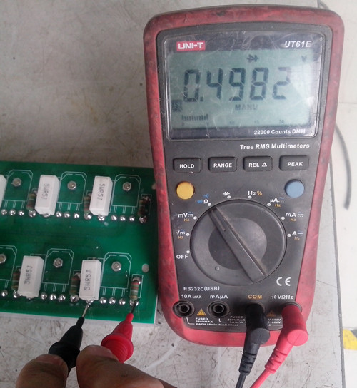 7.測量白色水泥電阻和綠色電阻是否正常(注:白色水泥電阻為0.5歐姆,小電阻為0.22歐姆,此處不在講述電阻測量方法,請參考其他教程說明)